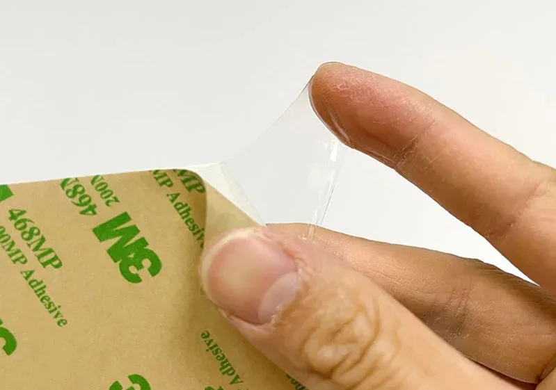 Estas cintas ultrafinas, como las transferidoras 3M™ 467MP o 468MP, se utilizan para unir materiales lisos en entornos donde cada milímetro importa: pantallas táctiles, mandos de domótica, placas frontales de electrodomésticos o tarjetas de circuitos impresos.